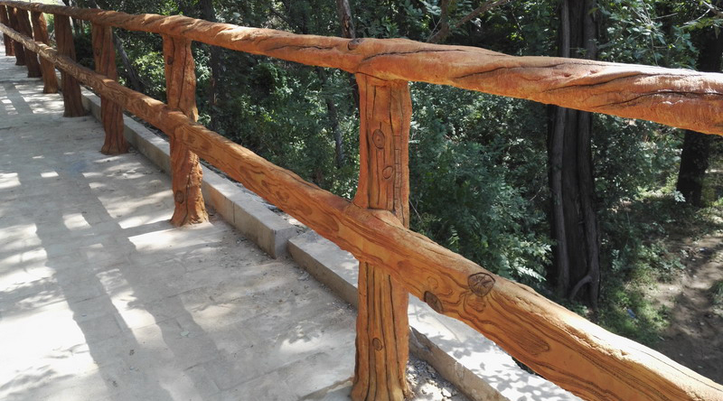 塑造水泥仿木:仿木房屋工程、大型仿木船、仿木橋、仿竹簡、仿木欄桿、仿木桌椅座凳、涼亭、文化長廊、樹樁垃圾桶、造型果皮箱、仿木葡萄架、塑木造型門、仿木標識牌等各種仿木景觀。